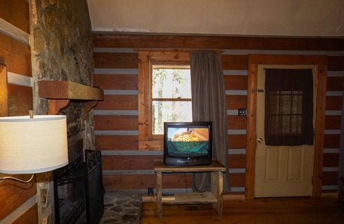 We consider our cabins to be semi-secluded. You're not way back in the woods, yet you're not in the middle of town. We have 6 log cabins lining the riverbank. The view across the river is forest land with no development. The cabins are separated by full deck areas, 8-15 feet in size. The back of the cabins are about 50 feet from Big Cove Road, which is a local side road with low to moderate traffic. We believe you'll find the setting peaceful and enjoyable.