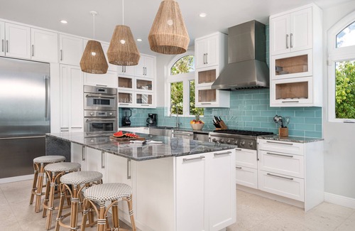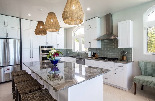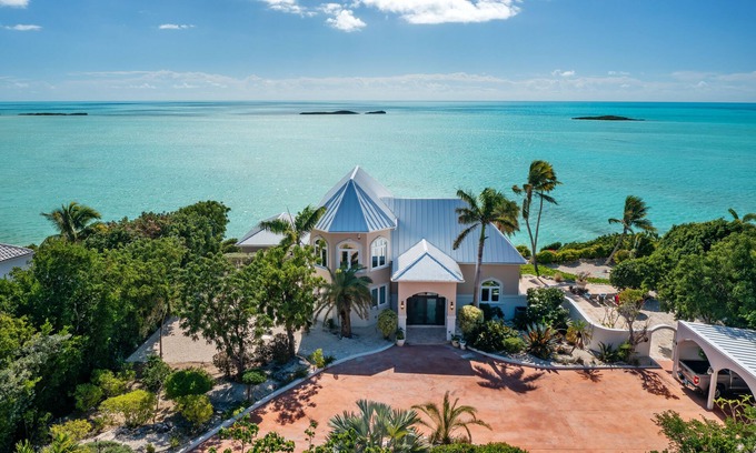 Three Cays Villa is an oceanfront four bedroom four bath masterpiece . It has a small beach immediately behind villa which appears during low tide. The views from this 'Taj Mahal in the tropics' are endless and mesmerizing. It was completely renovated in the last three years and has a brand new and substantially expanded guest house just completed. The guest house was demolished and is new in every respect. It is the villa’s most romantic and compelling area. Additionally, the villa has a new kitchen and new stainless steel appliances made by Thermador. It has granite countertops, lighting, complete with an island with sitting for six, etc. All bathrooms in the main structure are brand new, complete with luxurious vanities, granite counter tops and glass enclosed showers. Upstairs, both rooms have ensuite bathrooms and the master bedroom has been totally reconfigured with a massive picture window facing the ocean to allow one to view it while laying in bed. Furniture throughout the house is also brand new. There are are new windows and doors throughout the villa with a colossal opening leading out to the exterior terrace and it is graced with sliding pocket doors which may be completely opened to one side to allow trade winds to flow through the villa.