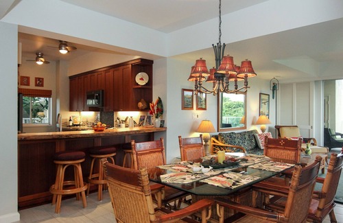 Our spacious 2 bedroom air conditioned luxury residence features extra living space and ceiling fans for natural ventilation, windows on all sides to capture tropical breezes, two large lanais with comfortable seating and dining area, and a closet full of snorkeling and sports equipment.