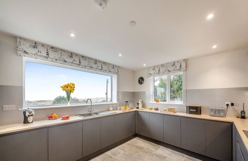 With modern architecture and a sleek design, this luxury pad will take your coastal break to the next level. This huge space boasts floor-to-ceiling bi-fold doors, which lead out onto the balcony. The central atrium oozes light from every angle, showcasing the spectacular views of the beach. Inside you can relax on one of the comfortable sofas or chairs in the welcoming lounge area or enjoy a bite to eat at the modern dining table, which is long enough to seat eight. The sleek kitchen has everything you’ll need to cook up a storm. From the living area, throw open the bi-fold doors and step out onto the balcony, which runs the full width of the house. This is the perfect spot to sit and take in the fabulous views, with your favourite drink in hand of course. Back inside, the three stylish bedrooms are decorated in a coastal palette of calmer tones. Designer fabric curtains carefully curated artwork and coordinating beach-style furnishings complete these wonderfully welcoming rooms. Conveniently there’s a ground-floor shower room and there’s also a luxury family bathroom with a bath and separate walk-in shower on the first floor. Heading outside from the ground floor, you’ll discover a large terrace with phenomenal views of the estuary. This sunspot is the ideal place to relax on one of the comfy outdoor chairs or fire up the barbecue for an alfresco feast.