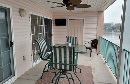 Nicely updated and spotless 2BR 2BA gated community condo right on the lake! (2) Queen beds in bedrooms as well as couch. Fully equipped kitchen with grill and TV on large covered deck. The condo features cable TV, WIFI, and all the comforts of home right next to the water! Outdoor swimming pool, lakeside swim platform attached to docks. Beautiful cove setting just off main channel. The condo is conveniently located by marinas, restaurants, night life, and family oriented activities. Start your relaxing vacation today with views for days! Boat slips available for rent in nearby area.