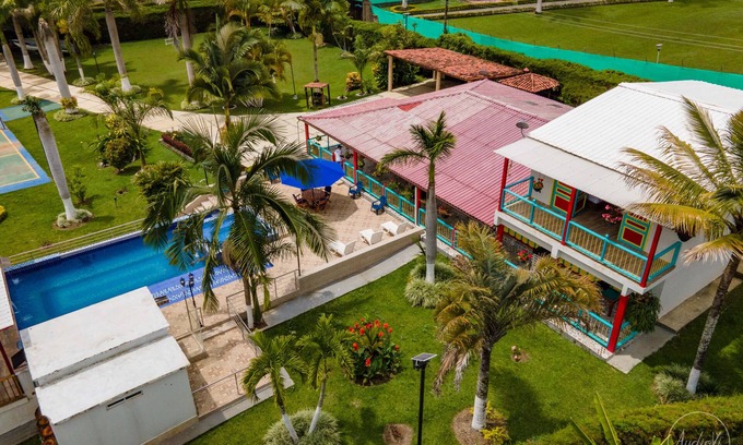 Exclusive elegant estate near Lake Calima, it has wide spaces, different living areas and a very traditional and luxurious atmosphere at the same time, it also has a large pool, Jacuzzi and open spaces, a semi-professional tennis court, rooms and large beds.