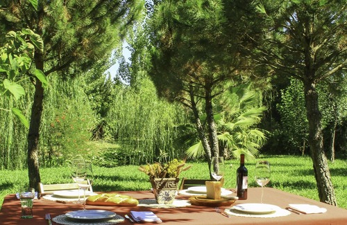 It has Internet and all the services expected from a house where you live regularly: appliances of all kinds, laundry with dryer, play area, television, music equipment, books, garden, pool, swings, fence with chickens and dogs...