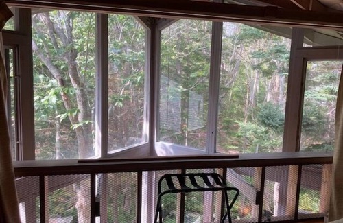 The living room offers expansive, 180-degree ocean views from seating around the coffee table---perfect for a cocktail-hour gathering, and equally inviting for an afternoon siesta or snuggling by the fire with a book. The open kitchen and dining room look out over a fresh-water stream that babbles through the pine forest just behind the house. The dining table expands to seat 10. A pass-through window from the dining/kitchen area to the screened porch is handy for serving blueberry pancake breakfasts. On the porch you can enjoy a cup of coffee while watching the lobster boats bring in their haul. A 'prow'-like sun deck opens off the screened porch and juts out over the shoreline.