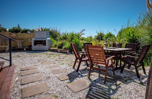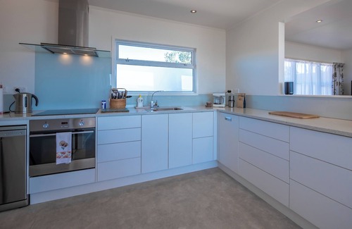 Stunning waterfront location with elevated sea views from sunny deck. Enjoy a family friendly holiday home where free-range kids can explore the shore-line, play games on the grass and walk to Mapua village for cafes, shops, tennis courts and playground. Located on the Great Taste Trail cycle route, so bring your bikes for day trips in two directions.