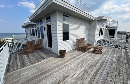 Over 4,000 sq. feet of outside space to enjoy the beach with wraparound decking on three floors plus a rooftop deck with hot tub. Two outside showers make it convenient to come back from the beach!