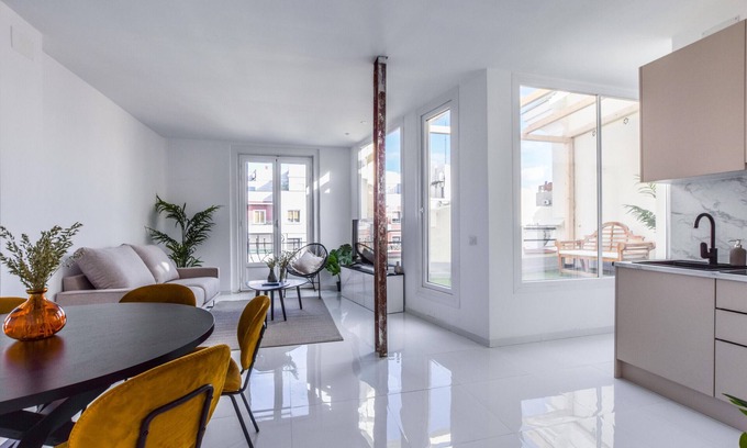 Three-bedroom apartment, with a spectacular terrace overlooking the center of Madrid. Recently renovated and decorated, with the best qualities and functionality to enjoy both comfort and quality. you can enjoy one of the best areas of Madrid. Very central location and well connected.