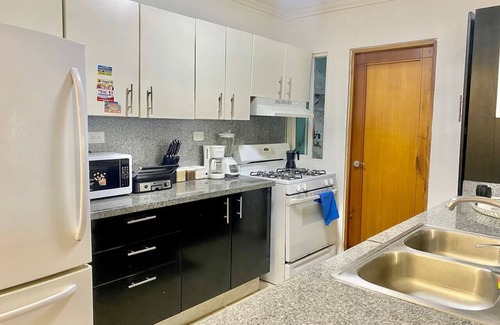 Beautiful upscale 2-bedroom apartment with amazing ocean view, modern decor and totally equipped with all the amenities of a home. Located 25 minutes from Las Americas Airport and just 10 minutes from the Colonial Zone, the oldest city of all the Americas. 2 private parking spots, with 24-hour security and an amazing pool. This apartment is perfect for families, couples, business travelers or anyone who wants to have a good time, relax and get to know the exciting city of Santo Domingo.