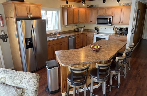 Relax on Semi Private Dock or on the Deck, both with fabulous lake views. Watch a spectacular sunset every night complete with Fireworks every Thursday Night and the Special Minnie Ha Ha drive-buy's each evening right off your dock!