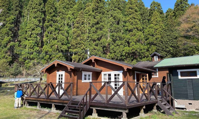 A Finnish pine log house surrounded by large Metasequoia trees Please spend a pleasant day on the large deck and the open field in front of you / It is a log house with a clean living and dining room 18 tatami mats a bedroom 6 tatami mats and a mediumsized bathtub with a cypress floor The living dining and bedrooms are equipped with air conditioning and heating There is a plaza of about 200 tsubo around it Capacity 5 people