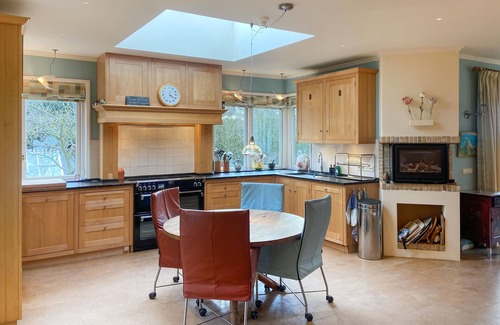 The extremely spacious house awaits you in an idyllic location surrounded by nature, from here you can easily reach the North Sea beach on foot. Make yourself comfortable with your loved ones in the cosy rooms, which will enchant you with their cosy atmosphere. After a wonderful day at the beach or an excursion in the area, gather the whole family around the long dining table, where you can dine with a beautiful view of the garden, and later cosy up by the fireplace.