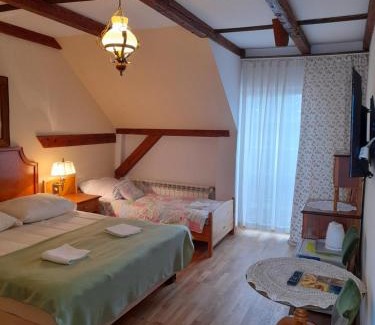 Food & DrinkChocolate/Cookies, Tea/Coffee maker, Bottle of waterBathroomShower, Private bathroom, Walk-in shower, Toilet, Free toiletries, Body soap, Bathtub or shower, Shampoo, Towels, Slippers, Toilet paperMedia & TechnologyTV, Flat-screen TVOutdoorsOutdoor furniture, Balcony, Barbecue, Outdoor dining area, TerraceBedroomLinens, Extra long beds (> 6.5 ft), Wardrobe or closetGeneralTrash cans, Private entrance, Hardwood or parquet floors, HeatingViewView, Lake view, Garden viewKitchenCleaning products, Kitchenware, Electric kettleRoom AmenitiesSofa bed, Clothes rack |