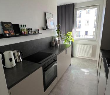Spirit of Old Prague - National Stadium offers accommodations in Warsaw, a 10-minute walk from Warsaw East Train Station and 1.4 miles from Copernicus Science Center. This property offers access to a balcony, free private parking, and free Wifi. Presidential Palace is 2.7 miles away and Krakowskie Przedmieście is 2.7 miles from the apartment. The apartment consists of 1 bedroom, a living room, a fully equipped kitchenette with an oven and a kettle, and 1 bathroom with a bath and a hair dryer. Towels and bed linen are provided in the apartment. The property has an outdoor dining area. Warsaw National Stadium is 1.1 miles from the apartment, while Warsaw University Library is 1.7 miles away. Warsaw Frederic Chopin Airport is 8.1 miles from the property.