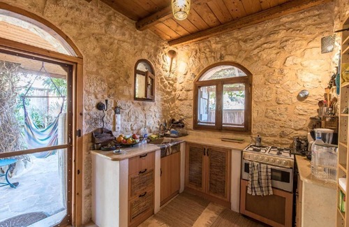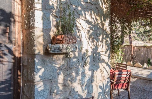 In middle of the idyllically small Tertsa Valley, below the small church, 500 m to the see, the stone built house was designed and built with respect for the environment, in a garden with flowers and fruit trees. Thanks to the traditional stone construction, it offers a comfortable and pleasant stay all year round. It provides simple and bright, well aerated spaces, ideal for relaxation. Outside, there are seating areas to enjoy. There is also a fire-place with possibility for barbecue. The Interior offers a kitchen in addition with a storage-room for refrigerator, washing machine and space for all the essentials for every days use. It has a spacious living room to feel pleasant. In winter nights a fireplace gives warmth and atmosphere. The two bedrooms are with double beds. They have doors to the garden. WLAN Access and a screen with an apple-tv Box.