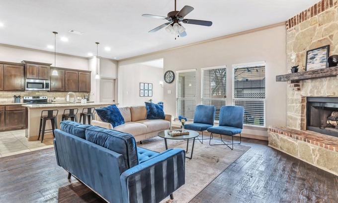 Relax with the blue themed peaceful home where you can stay with the whole family or with friends for a quiet and fun time in Rockwall, Texas. Walking distance/driving distance from downtown, great restaurants and bars, and other attractions. 15 minutes away from Lake Ray Hubbard and Harry Myers Park, along with farmers markets, great breweries, and cafes.