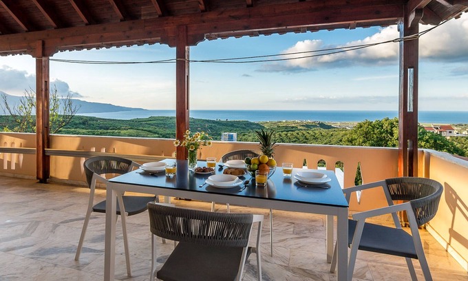 A flat ideal for up to 7 persons offering one triple ensuite bedroom, one double bedroom, a fully equipped kitchen, open space living room and a large bathroom. A spacious balcony overlooking the full of green landscape and the Cretan Sea in the background, ideal for dining or relaxing. Wifi, 3 TV sets and washer available! Strategically located close to the world famous beaches of Balos, Falasarna, and Elafonissi.