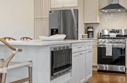 Our property boasts a fully stocked kitchen, complete with a stove, oven, refrigerator, grill, microwave, and all the essential cookware and utensils you'll need to prepare delicious meals. Gather around the dining table or step outside to the fire pit and outdoor furniture for alfresco dining under the stars.