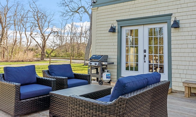 Discover a delightful three-bedroom getaway nestled within East Falmouth's center. It's merely a nine-minute car ride away from the breathtaking Cape Cod beaches. Immerse yourself in the tranquility of the area, with the Woods Hole Ferry Terminal and Island Queen Ferry both within a short 17-minute and 8-minute drive, respectively.