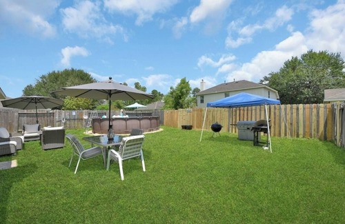 This modern home has everything you'll need for a memorable stay in spring! It boats stylish furnishings and modern amenities including an above ground pool! Fully equipped kitchen. Four comfy bedrooms that offer Roku TV, Our Gameroom has a Hockey table, Soccer table, Basketball arcade, Board games and High-speed Wi-Fi, The backyard features an Electric grill, Charcoal grill, fun backyard games creating an Idyllic setting for unwinding and relaxation.