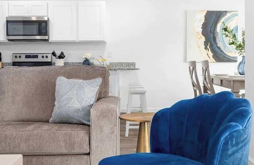 Step into a spacious and tastefully decorated living area that serves as the perfect gathering spot for family and friends. The open-concept layout seamlessly connects the living room to the fully equipped kitchen, creating a warm and inviting atmosphere. The kitchen features modern appliances, ample counter space, and all the essentials to whip up delicious meals during your stay.