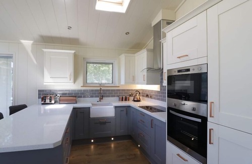 Squirrel Lodge is a stunning, detached, all ground floor lodge in the village of Gargrave. This lodge sleeps four people in two bedrooms which are a king-size double with an en-suite shower room and a 2'6" twin room which can be a king-size double on request. There is also a bathroom, an open plan living area with a kitchen, dining area and a sitting area and a utility. Outside is a decked area with furniture and there is off road parking for two cars. Electric car charging is not permitted (charging point situated at Skipton Town Hall car park).