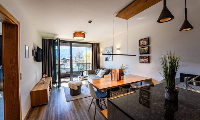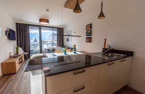 2 bedroom AP central, quiet location. A 2 bed room-apartment furnished in modern, alpine style offering a breathtaking mountain panorama. Become one with nature and unwind. Experience gorgeous sunsets as well as the unforgettable play of colours of the surrounding landscape directly from your apartment. At the end of a relaxing day of hiking or an eventful ski-tour you'll relish the comfort of your apartment to the fullest. Walking distance to ski system - the apartment house is located only about 3 minutes walking distance from to the base station Areitbahn - Schmittenhöhe.