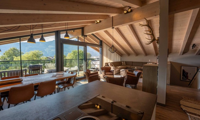 In creating the Schönblick Residence, special emphasis has been placed on the landscape-based architecture and the use of local materials. The decor in a modern Austrian country house style instantly conveys a sense of well-being.