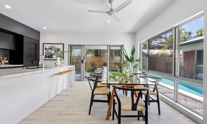 This 4 Bedrooms Villa provides accommodation with Kitchen, Pool, Designated Smoking Area, for your convenience. This Villa features many amenities for guests who want to stay for a few days, a weekend or probably a longer vacation with family, friends or group. This Villa is less than 2 km from Port Douglas, and gives visitors the opportunity to explore it. The rental Villa has 4 Bedrooms and 2 Bathrooms to make you feel right at home.