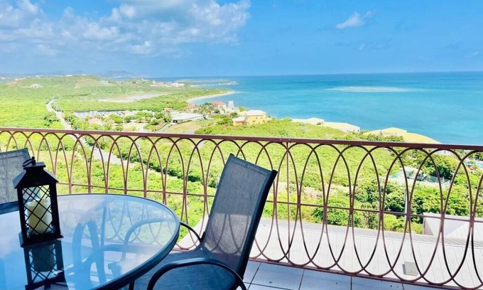 Experience the pinnacle of luxury in this renovated top-floor corner unit. Relax on your expansive gallery with a refreshing drink and BBQ as you watch sailboats glide by. Enjoy panoramic views from the large gallery that overlooks the ocean, Buck Island, and verdant valleys. This exquisite 3-bedroom condo is part of a complex featuring a shared pool and 'THE GOAT' seasonal restaurant on-site (open mid-December to mid-April). Located just minutes from pristine sandy beaches, fine dining, the town of Christiansted, the yacht club, and Buccaneer golf courses. The unit boasts air conditioning throughout, remote-controlled interior ceiling fans, and furniture chosen specifically for our unique condo design. The fully equipped kitchen includes a water dispenser, wine cooler, additional freezer, and brand new dishwasher to ensure high efficiency and water conservation. With high-speed Wi-Fi and a well-appointed workstation, you can stay connected as needed. This delightful condo is ready for your vacation. Book now to experience the bliss of St. Croix!