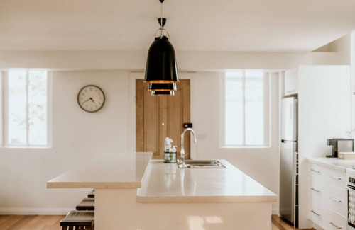 The second bedroom has two King single beds and the option for a third pull out single bed available on request. Complete with the views of the church windows, exposed beams and brick wall you will appreciate the history of this beautiful building.