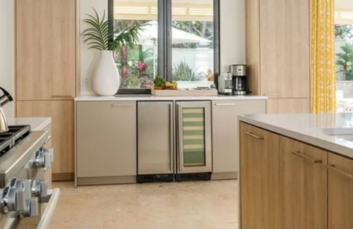 This 4-bedroom villa comprises two expansive owners' King suites with direct access to outdoor living spaces, complemented by two generous double Queen guest suites and four full and one half bathrooms. Vaulted ceilings, adorned with exposed beam accents, infuse the interiors with an airy ambiance. The European kitchen, featuring designer appliances, adds a touch of modern elegance. The villa's seamless outdoor living spaces beckon, featuring a private pool and a landscaped courtyard, creating an ideal setting for entertaining.