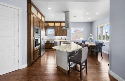 Foa'Lua is a direct waterfront executive and a one-of-a-kind, gorgeous, and tranquil St. Pete Beach House. Foa'Lua is one that is unmatched! It has a perfect location with the best of everything around. You are a short two-and-a-half-minute walk to the direct beach access! The three-bedroom two, two-bath home sleeps 6 people comfortably. It features a $3000 king-size Purple mattress in the master bedroom, a queen in the guest bedroom, a full-size pull-out couch in the second guest bedroom, and an extra twin mattress if needed if an extra person needs to be accommodated. You will enjoy the fully updated chef's kitchen, which includes a gas cooktop with a separate beverage cooler and 4 TVs for your entertainment needs. The TV in the living room is an 80" 4K OLED TV. ***NOTE: There is a non-refundable pet deposit in the amount of $500.00***