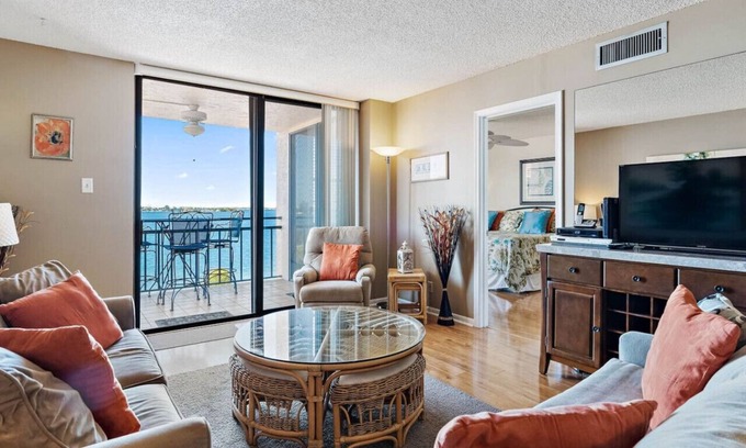 Casa Del Mar building B 507 is a gorgeous fifth-floor, one-bedroom condo with beautiful Bayfront views! Relax on the balcony with a table and chairs. This one-bedroom, one-and-a-half-bath unit sleeps four guests, with a king-size bed in the bedroom and two on the sleeper sofa in the living room. The kitchen and baths have been beautifully remodeled, all with granite counters. The condo has two flat-screen TVs, complimentary WiFi, and free North American long-distance calling.