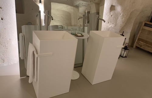 This 90m2 suite is entirely honed out of the calcareous rock that makes the Sassi of Matera so famous and so special.