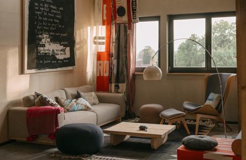 Stall & Sterne - Ferienwohnungen in der Scheune in Hirschfeld provides accommodations with a garden and a bar. Private parking is available on site at this recently renovated property. The accommodation offers a sauna, free Wifi throughout the property, and family rooms. All units come with a terrace with garden views, a fully equipped kitchen with a toaster and a fridge, and a private bathroom with walk-in shower. A stovetop, a minibar, and kitchenware are also offered, as well as a coffee machine and a kettle. At the apartment complex, the units have bed linen and towels. For guests with children, the apartment provides outdoor play equipment. With an outdoor fireplace and a picnic area, this apartment offers plenty of opportunities to wind down. Göltzsch Viaduct is 12 miles from Stall & Sterne - Ferienwohnungen in der Scheune, while German Space Travel Exhibition is 18 miles from the property. Dresden Airport is 75 miles away.