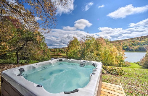 R and R is second nature at this 6-bedroom, 4-bath Stamford vacation rental! Embark on your relaxing retreat with ease as you begin your days with a cup of coffee in your living room or an early morning fish at Whiting Hollow Lake. Later, hike nearby state parks, sample local flavors at nearby wineries, or in chillier months, hit the slopes at Plattekill or Hunter Mountain Ski Resorts. Kick back in the evening in front of the fireplace, or enjoy a nightcap under starry skies in the hot tub!