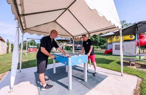 Information welcomeOpen year roundGroup receptionHome nightMotorhome pitchesMotorhome areaAnimals acceptedon requestLanguages spokenFrenchEnglishSituationVillageNearby:riverpondIn the countrysideNearby:riverpondInfrastructureCatering infrastructureBarRestaurantSnackHousehold equipmentChanging tableBusiness equipment / meetingMeeting roomMaximum number of persons : 40SeminarMaximum number of persons : 40Leisure equipmentWifiFreeThe whole establishmentTradeTrades 1st necessity (Distance : 4 km )Epiceria (Distance: 2 km )ChildrenOutdoor play areaSwing : 1Toboggan : 1Trampoline: 1Board gamesIndoor Children's PlayroomPoolsSwimming pool : 1ServicesCatering servicesPizza delivery Picnic basketsCatererTourism / LogisticsTourist informationTourist documentationElectric vehicle charging station aroundElectric vehicle charging station on site: 2ActivitiesSports activitiesGolf (Distance: 20 km )FisheriesBaby football BicyclesEquityPetancaHiking