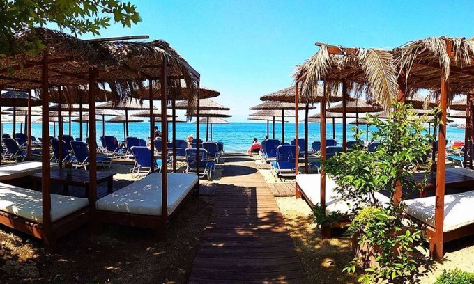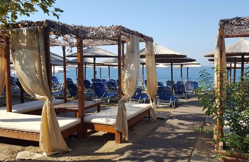 Location: The hotel with its studios and flats is located 18 km south of Volos in Kala Nera directly on the beach. Only the local road (5 m) separates the hotel from the sandy beach.