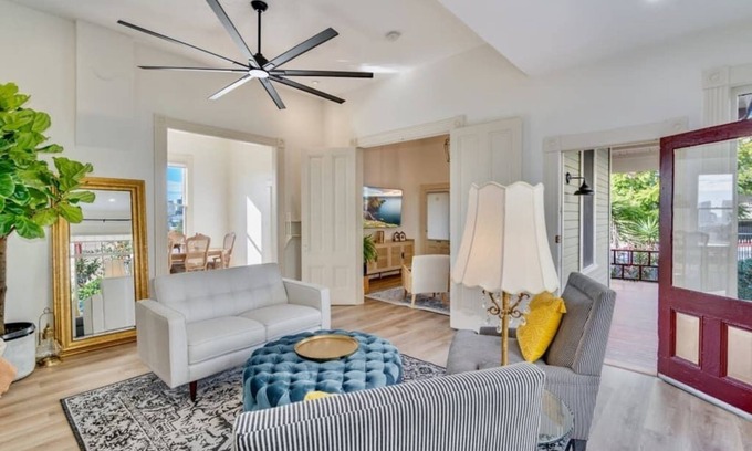 Located just east of downtown San Diego, perched on the hill you'll enjoy this 1893 victorian home with all its charm. The home is 1,500 SF with 3 bedrooms, 1 parlor/tv room, and 2 bathrooms. High ceilings throughout and plenty of space family and friends. Completely remodeled in 2022, you'll have everything you need for a cozy and comfortable stay. In the evening, you'll learn how "golden hills" got its name as you watch the sunset light up the living room and the night skyline come to life.