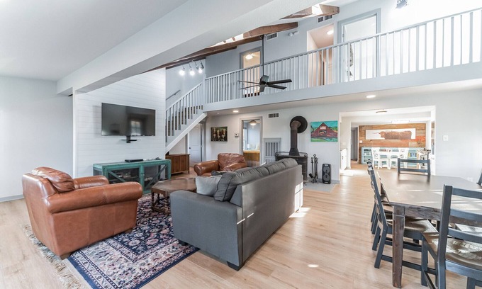 Conveniently located off Hwy 71, Star Bar Farm is an idyllic getaway for those wanting rest and rejuvenation. This beautifully renovated home sits on 3.5 acres of working ranch, complete with cows and pond! Ideal for groups (up to 15) who want to gather comfortably, this expansive 5 bed, 4.5 bath home is the perfect spot for entertaining and relaxing.