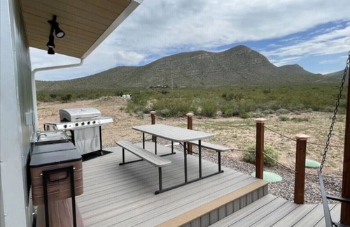 Escape to Star Gazer's Hideaway, nestled at Mule Mountains' base, just 20 mins from Bisbee & 30 mins from Sierra Vista. Relax under the pergola, spotting wildlife or enjoying sunrise/sunset. Nearby, explore Bisbee's charm, hike Coronado Forest trails, delve into Fort Huachuca's history, or savor Southwestern cuisine. The Outdoor kitchen & grill ensure delightful meals or watch the sunrise or sunset from the oversized deck with swinging chairs. Your serene Arizona retreat awaits!