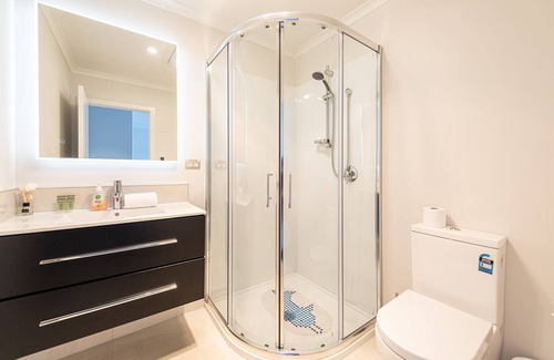 There are two-bedroom ensuites and a twin ensuite in the modern house. A fully facilities kitchen and spacious lounge with mountain and pond views. Floor heating in each bathroom and complimentary shower amenities.