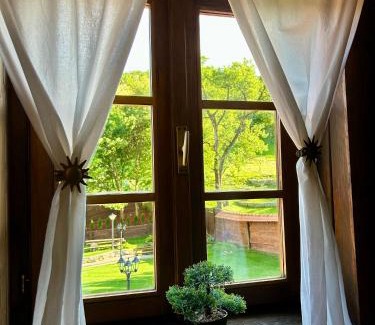 Food & DrinkTea/Coffee maker, Bottle of waterBathroomBathtub or shower, Body soap, Free toiletries, Bathrobe, Shower, Hairdryer, Towels, Toilet paper, Toilet, Private bathroom, Conditioner, Shower cap, Guest bathroomMedia & TechnologyFlat-screen TV, Radio, TVGeneralHeating, Carpeted, Ironing facilities, Iron, Hardwood or parquet floors, Private entrance, Air conditioning, Trash cansKitchenKitchen, Wine glasses, Kitchenette, Refrigerator, Microwave, Toaster, Kitchenware, Dining table, Cleaning products, StovetopOutdoorsTerrace, Barbecue, Outdoor furniture, Patio, BalconyLiving AreaDining area, Sofa, Desk, Sitting area, FireplaceBedroomChildrens' cribs, Wardrobe or closet, Walk-in closetViewView, Garden viewAccessibilityUpper floors accessible by stairs onlyBuilding CharacteristicsDetachedRoom AmenitiesClothes rack, Fold-up bed, Sofa bed, Non-feather pillow, Socket near the bedCleanliness & disinfectionHand sanitizer |