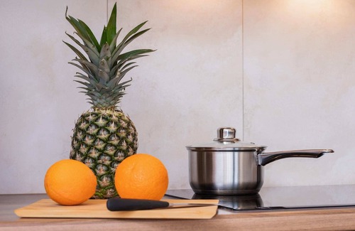 Induction hob, kettle, glasses, a set of pots, cutlery, frying pan, toaster, dishwasher, coffee machine, toaster