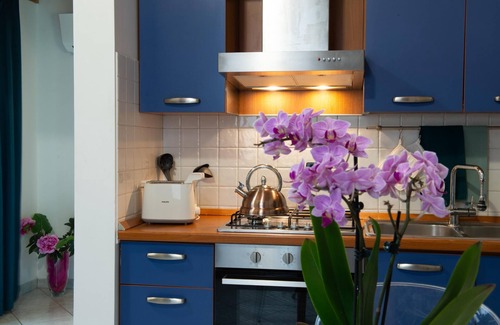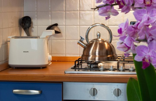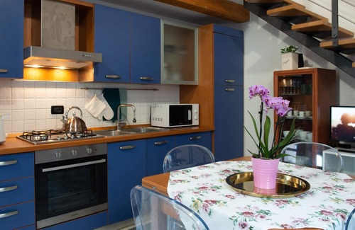 The apartment is developed on two floors with exposed beams and consists of 1 bedroom and a loft, with the possibility to comfortably accommodate 5 people in a frame certainly suggestive and quiet which is the island of Giudecca. The flat of about 85 square meters has 2 bathrooms, one with bathtub, a double room and a loft with French bed and single bed, fully equipped kitchen, dishwasher, washing machine, safe, living room with TV and free WIFI, air conditioning in every room and thanks to the modern lines and the ceiling with exposed beams allows a warm welcome to guests. We pay particular attention to the sanitation of environments. The apartment is located about 150 m. from the pier of Palanca and in the same area there are stores of various kinds, and restaurants, all outside the large tourist flows.