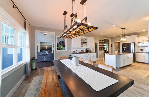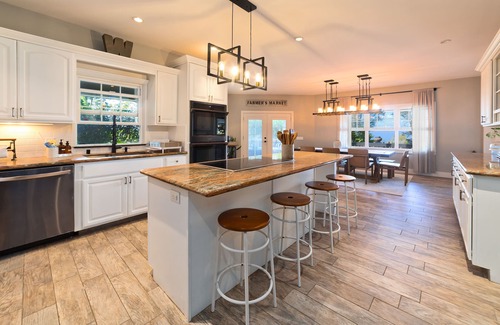 Indoor dining for 9, outdoor dining for 9, kitchen bar for 4
