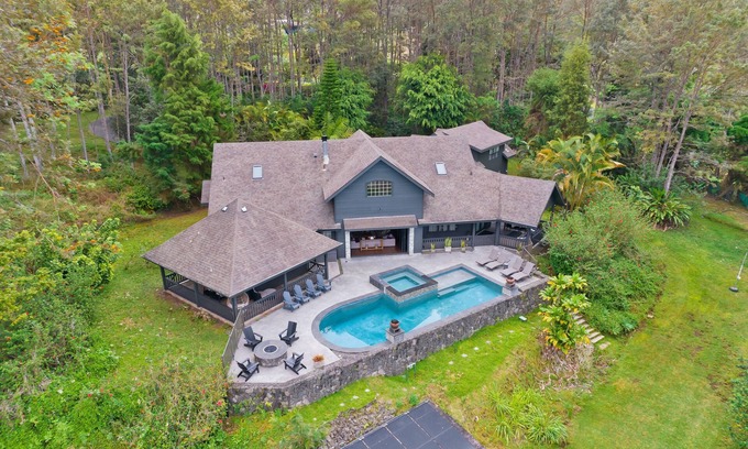 Welcome to The Lodge at Kaloko, a luxury gated estate in the lush Kona Cloud Forest — just 15 minutes from Manini‘owali Beach (Kua Bay), downtown Kona, and the airport. This 5,000 sq ft private retreat on 3 acres offers the perfect balance of resort-style amenities and tropical adventure.