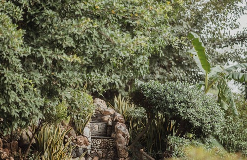 3 lush green gardens adorned with exquisite plants, trees, and 2 beautiful fountains.