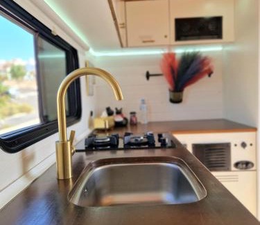 Featuring a garden, Static Camper in front of the Sea offers accommodations in El Médano. This property offers access to a patio, free private parking, and free Wifi. Staff on site can arrange a shuttle service. Offering a terrace with mountain views, this campground also features a flat-screen TV, a well-equipped kitchen with a fridge, a stovetop, and kitchenware, as well as 1 bathroom with a shower and free toiletries. The property has an outdoor dining area. The campground has a picnic area where you can spend the day outdoors. La Tejita Beach is a 5-minute walk from the campground, while Golf del Sur Golf Course is 7.1 miles away. Tenerife South Airport is 1.2 miles from the property, and the property offers a paid airport shuttle service.