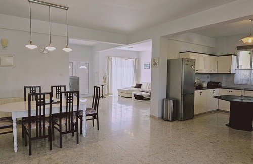 Welcome to our inviting 3-bedroom house, where modern comforts blend seamlessly with natural beauty. Nestled within a serene cactus garden, this tranquil retreat promises a getaway for families or friends seeking relaxation and harmony.Located in a peaceful area of Oroklini, but only 300 m from the beach, the property features a lovely terrace and garden where you can relax and unwind from the stress of everyday life.Spacious - Cactus Garden - Terrace - Balcony - Close to the beach - ACAs you step into our abode, you'll be greeted by a spacious and light-filled living area, exuding warmth and comfort. Sink into the sofa and unwind as you watch your favourite shows on the smart TV, or indulge in a leisurely evening at the elegant bar. The fully equipped kitchen beckons to culinary enthusiasts, offering everything you need to whip up delicious meals with ease. From morning coffees to gourmet dinners, this kitchen has you covered.A dining table for six guests, inviting shared meals and cherished moments.When it's time to retire for the night, three cozy bedrooms await your slumber. The master bedroom boasts a luxurious king-size bed, while the other two bedrooms offer two single beds each. With air conditioners and wardrobes in every room, your comfort is ensured throughout your stay. In two bedrooms you will also find TVs.Step outside from the bedroom to discover your own private oasis. A beautiful balcony offers a tranquil spot to enjoy your morning coffee or evening drinks, with views of the lush garden surrounding you. Freshen up in one of the two full bathrooms—one ensuite with a rejuvenating shower, the other with a soothing bathtub. An additional half bathroom provides added convenience, ensuring a seamless experience for all guests.Venture further to the backyard terrace, where a table and chairs await amidst the stunning cactus garden—a perfect setting for moments of quiet contemplation or shared laughter.For added convenience, a covered garage is provided for parking, ensuring peace of mind during your stay.Indoor facilities:- Air conditioning- Free WiFi- TV- Oven- Fridge- Dishwasher- Microwave- Electric Kettle- Fully Equipped Kitchen- Washing machine- Iron and Board- Hair Dryer- 1 kingsize bed and 4 single beds- Bed linen- TowelsOutdoor facilities:- Free street parking- Private courtyard with beautiful cactus gardenThis property is expertly managed by STAY Short Lets on behalf of the HOST (property owner). Our mission is to deliver outstanding services and present a variety of distinctive properties from our homeowners to our guests. We strive to provide a seamless and comfortable experience, from the initial booking to the moment you depart the property.Our dedicated team of professional property managers is committed to delivering excellent customer service to every guest. We take pride in customizing our services to meet each guest's unique needs, ensuring a memorable and enjoyable STAY. DISCOVER A NEW WAY TO STAY - We eagerly anticipate welcoming you to our properties.GUEST REGISTRATION & RENTAL AGREEMENT SIGNING: All guests must complete our online registration form, sign the rental agreement, and provide identification. This is a requirement outlined in our management agreement with the property owner. The process takes just 1 minute to complete. Our data handling aligns with the 7 principles of the GDPR and is deleted from our system within 7 days after your checkout.Guests will receive a digital rental agreement which must be signed and returned to the property prior to arrival.THIS IS A SELF-CATERING ACCOMMODATION; we are not a Hotel. We provide only starters and guests are responsible to restock any items and purchase everything that they will require during their stay. Edible items (oil, salt, pepper) and cleaning products are not provided. We provide linen and towels based on the number of people that have booked the accommodation.PROPERTY GUEST AREA Within 24 hours of your booking you will receive the Guest Area link with all the important information about the property. We strongly suggest using the property app before your arrival as well as during your stay as it includes important information such as directions and address, parking, wifi codes, facilities, things to do, etc. Before you contact us with any questions during your stay please check first if you can’t find an answer in our guest area - most likely the answer will be there!EXTRA SERVICES & REQUESTS• If your reservation is 10 nights or longer, you can request an extra set of bed sheets and towels per guest at no charge. For reservations shorter than 10 nights, you can still request bed sheets and towels, but there will be an additional fee. Expect delivery within one day. Please note that to receive any items, you must request them from our staff or through the guest area. Guests are responsible for changing the bed sheets themselves as needed.• EXTRA Housekeeping Services, including daily services, are available on request at an additional cost.• Baby cots and high chairs can be provided for our little guests. Only upon request and for an extra charge of €30/stay for Baby Cot and €10/stay for HighChair• Airport transportation is available upon request and at extra cost.FOR SMART TV WITH NO CHANNELS: Our listing includes a smart TV, but it does not have satellite channels. However, feel free to browse the web, watch YouTube, or log in to your Netflix account. FOR CARDS: Upon check-in, you will receive an energy-saving card attached to your apartment key. Please remember to remove it from the card holder when you leave the apartment.FOR KEYS: Upon check-in, you will receive ONLY ONE apartment key. We kindly ask that you store it in the key box whenever you go out to prevent it from being misplaced and to ensure it remains accessible to all members of your group.ELECTRICITYIMPORTANT - Energy Efficiency and Sustainability Notice: We are committed to promoting efficient energy use in our c
